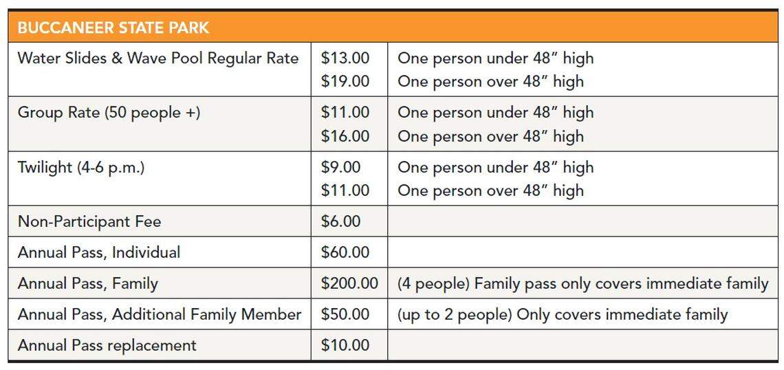 ▪ Where: Located in between Biloxi and New Orleans, Bucaneer Bay Waterpark is at Bucaneer State Park, 1050 South Beach Blvd. in Waveland
