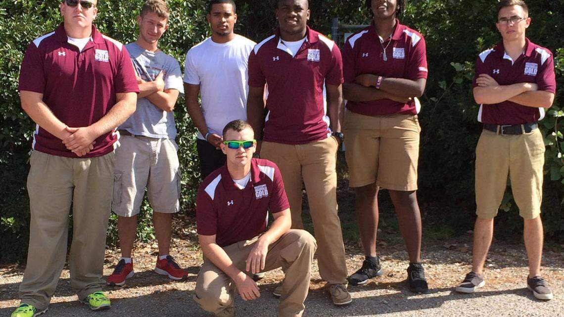 Cadets in the Magnolia Gold program at Pearl River Community College completed a community service project at Poplarville Upper Elementary School. The students cleared and cleaned an existing nature trail near the school so that it can be used by the younger students. Students who worked on the trail are, in front, Alan Marek of New Orleans; standing, from left, Bjorn Byrd of Lumberton; Keith Mitchell of Carriere; Jamyrian Quinn and Justin McWilliams, both of Gautier; Markeysia Harness of Biloxi; and Jared Johnson of Poplarville. Magnolia Gold is the Mississippi Army National Guard's military leadership program at the community college level. The program began at PRCC in the 2015 spring semester.